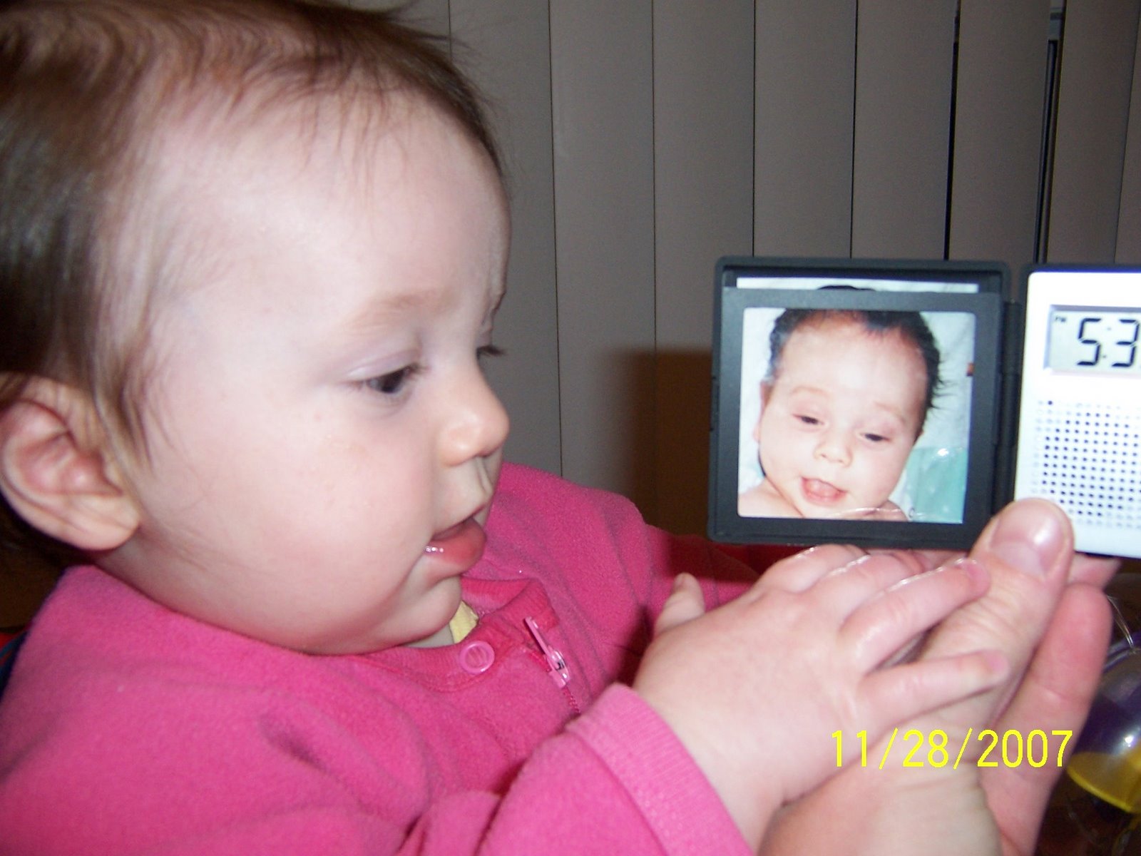 We recently came across this photo of Logan when he was about Meryl's age. We've been saying how much she looks like Avery did, but she also looks a bit like Logan. Here she is listening to Logan reciting the alphabet when he was about 2.